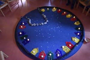 Vormittags ging es direkt mit einem St. Martins-Buffet in den Gruppen los, bei dem die Kinder ihre mitgebrachten Brotzeiten passend zum Thema teilen konnten. Dazu wurde gemütlich Musik gehört und über die St. Martins-Geschichte gesprochen.